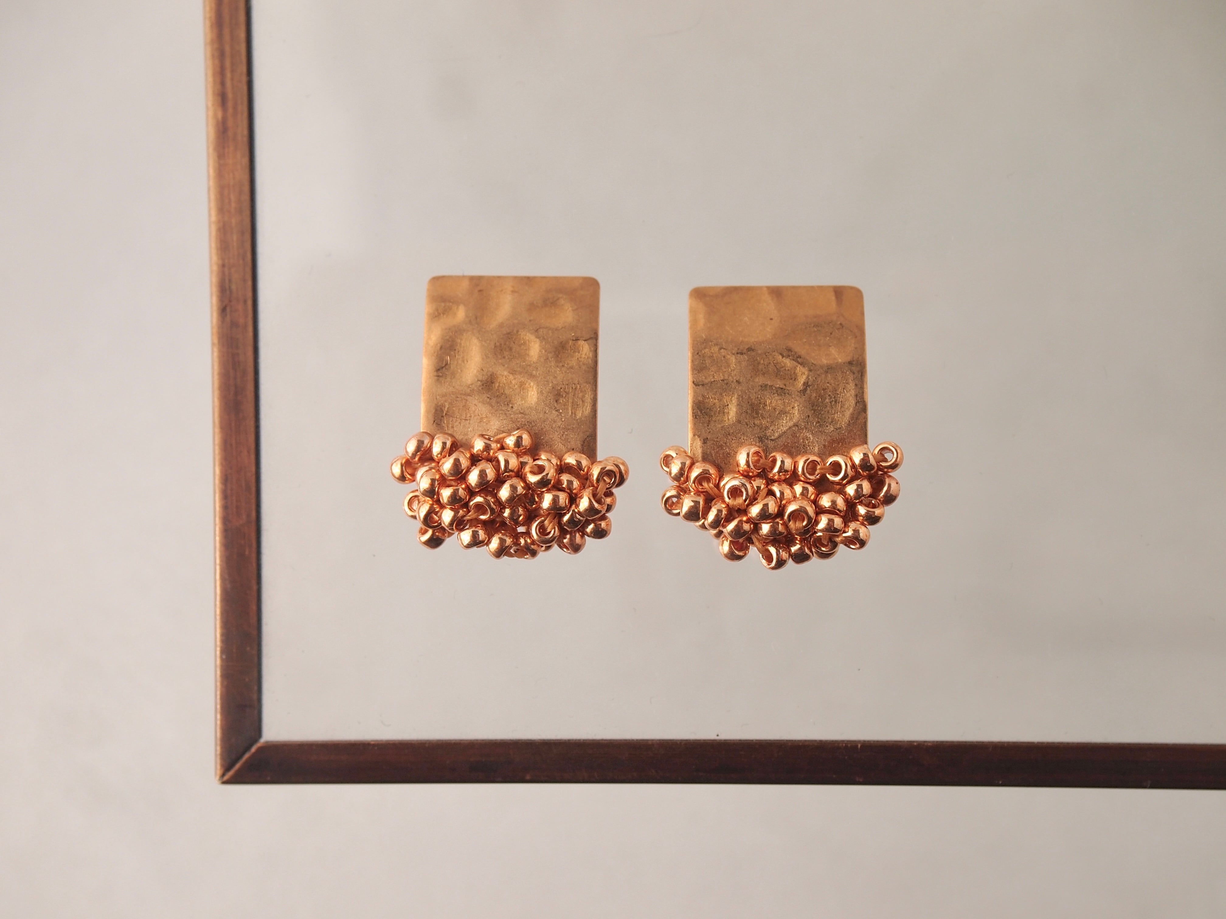 goldビーズを合わせた耳飾り。