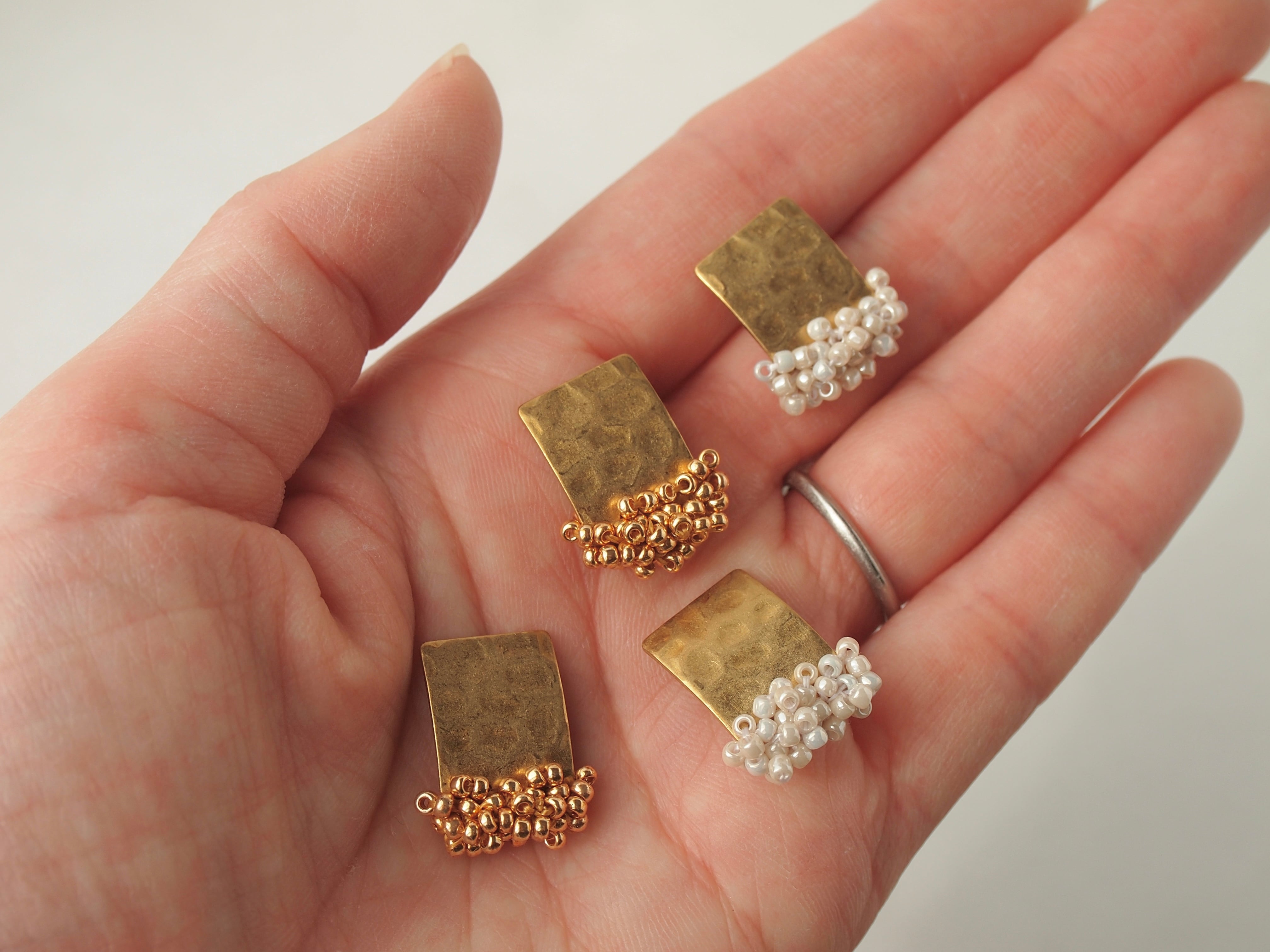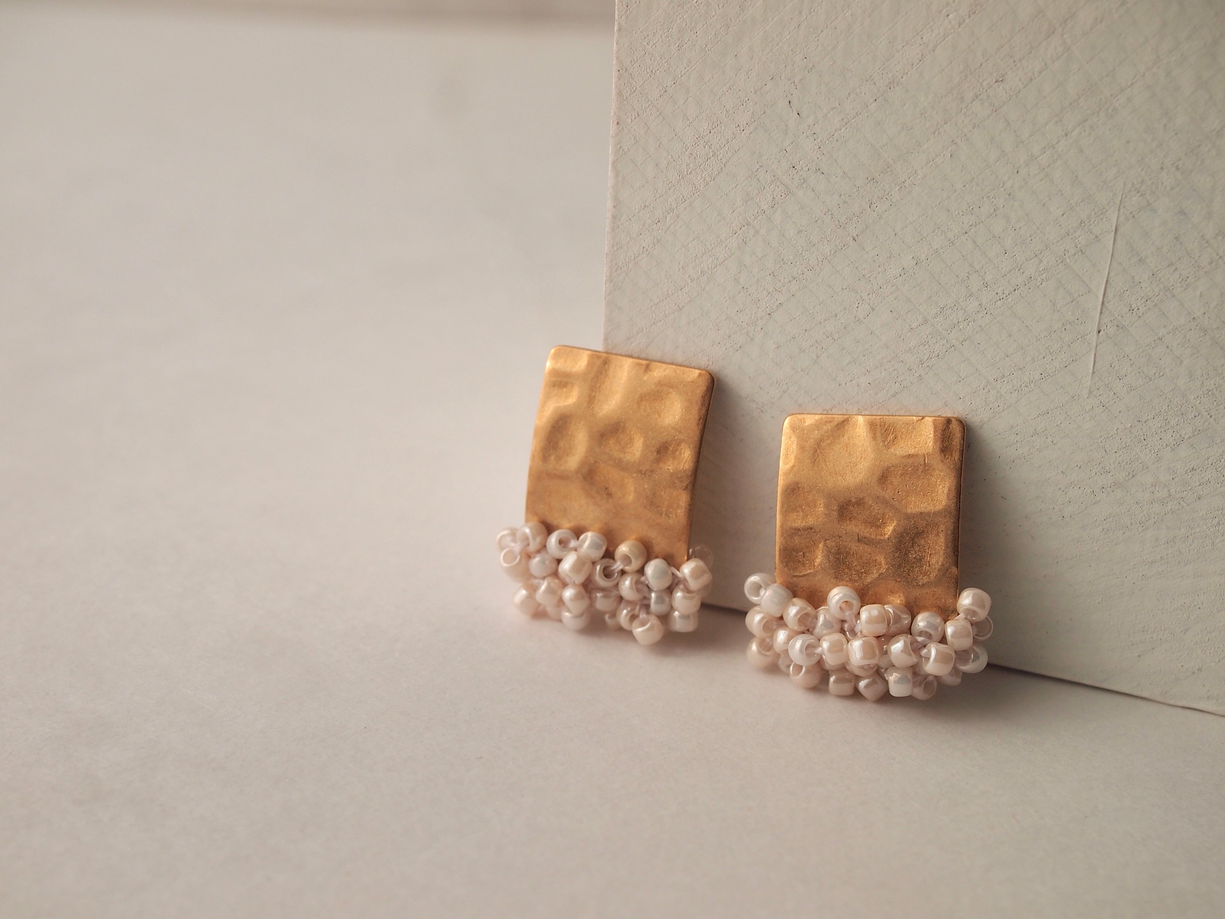 【受注制作】[ピアスorイヤリング]ビーズ刺繍の真鍮添え 手染めカラー