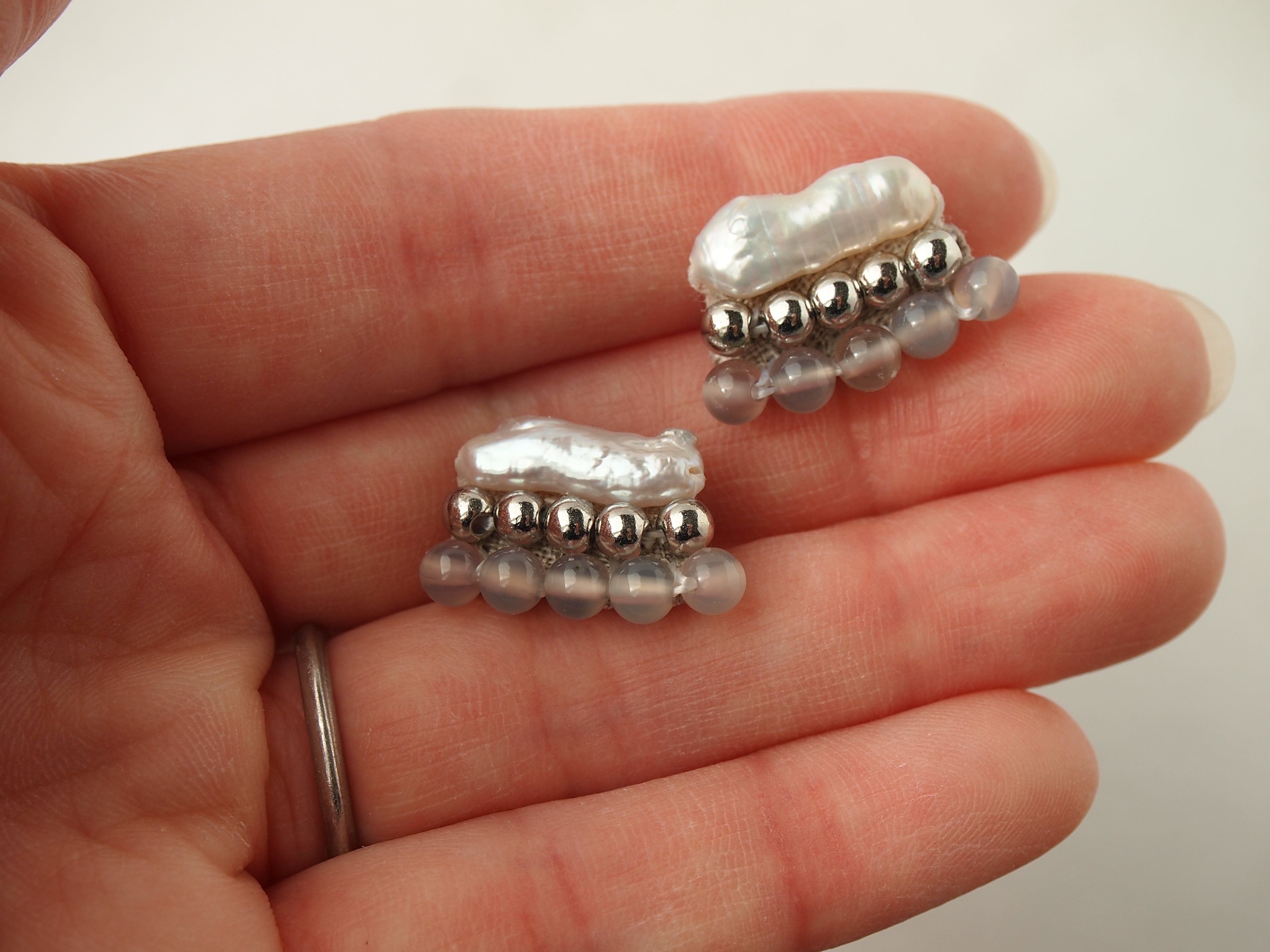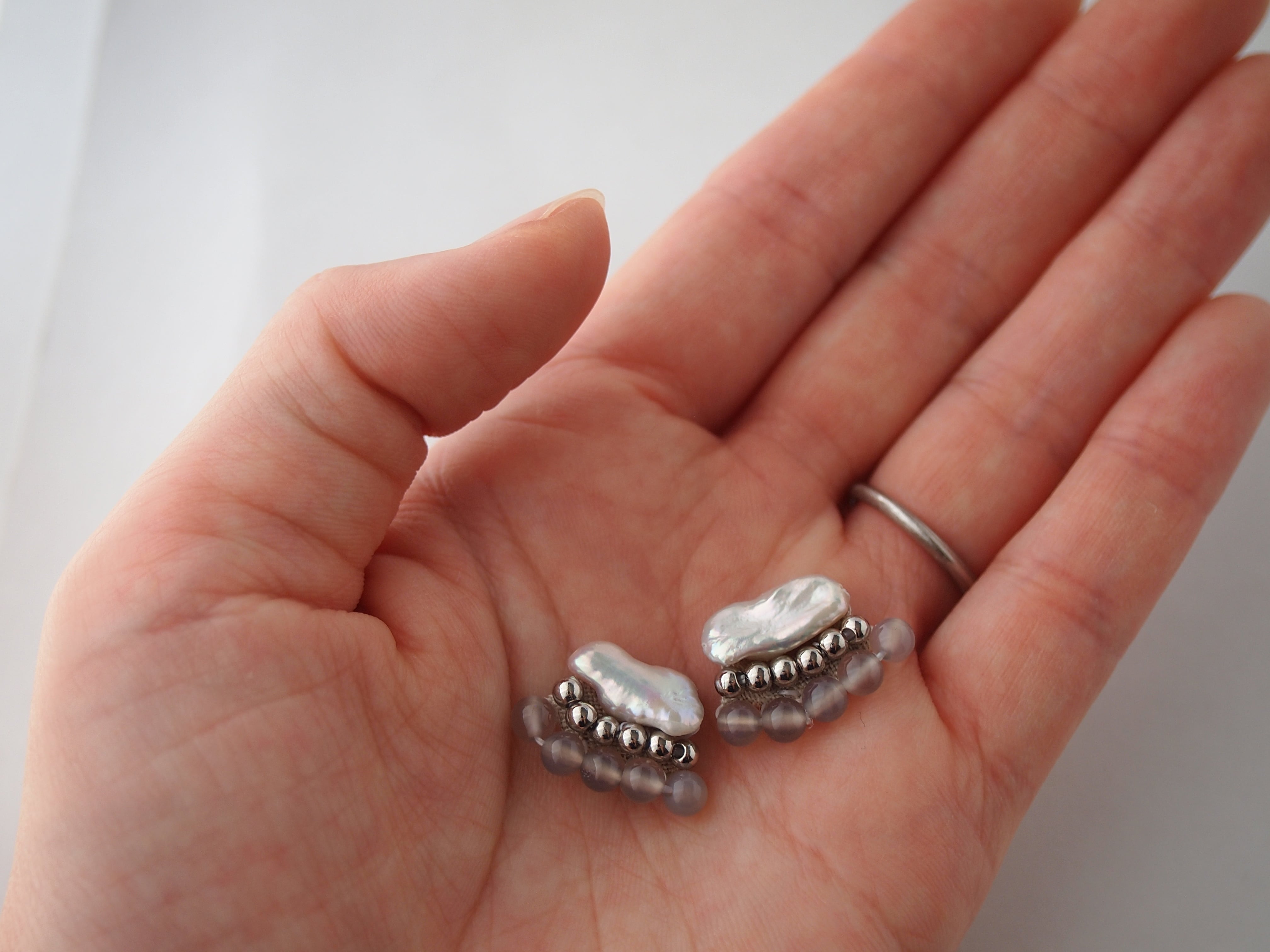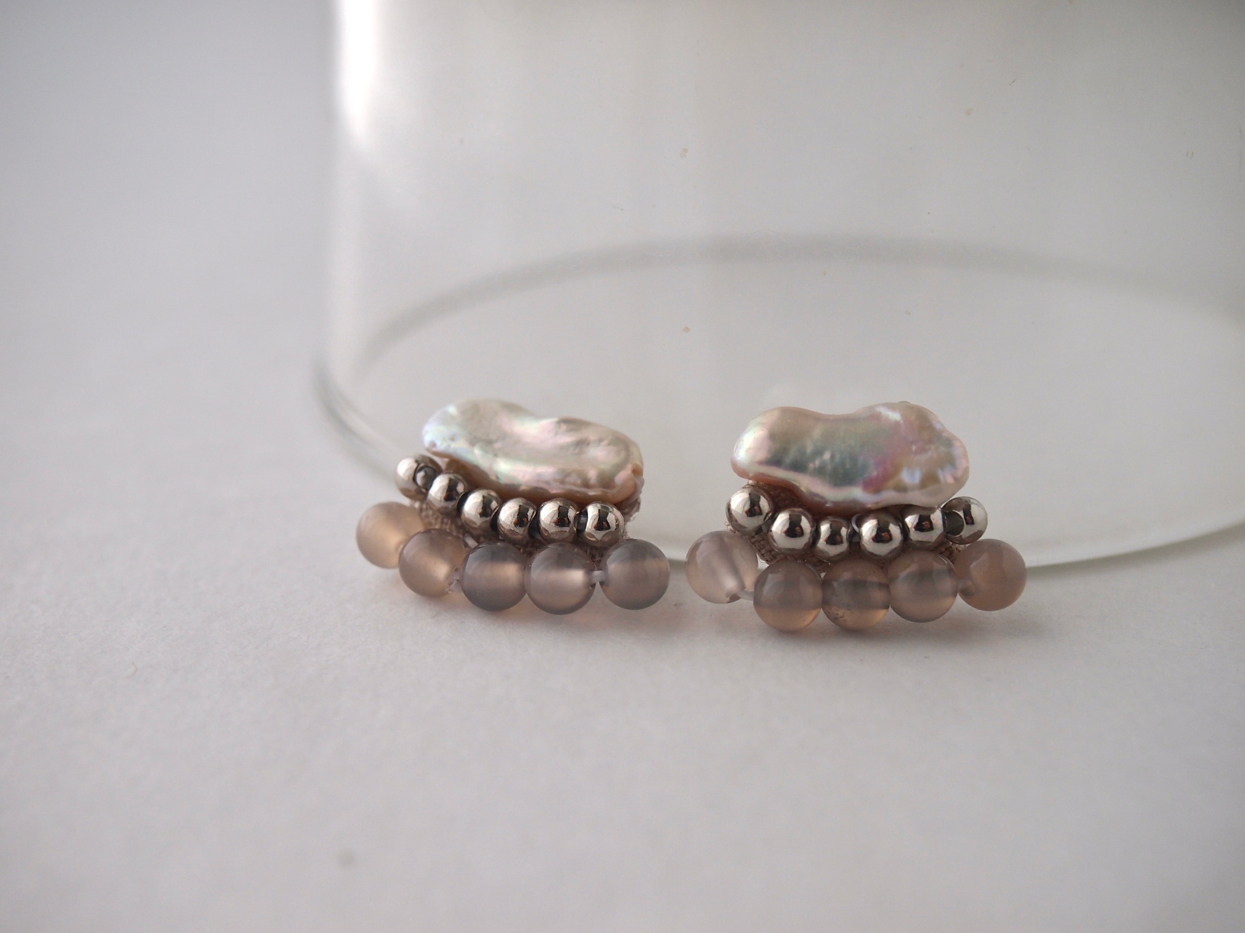 【受注制作】[ピアスorイヤリング]芥子パール×銅玉×グレーメノウ