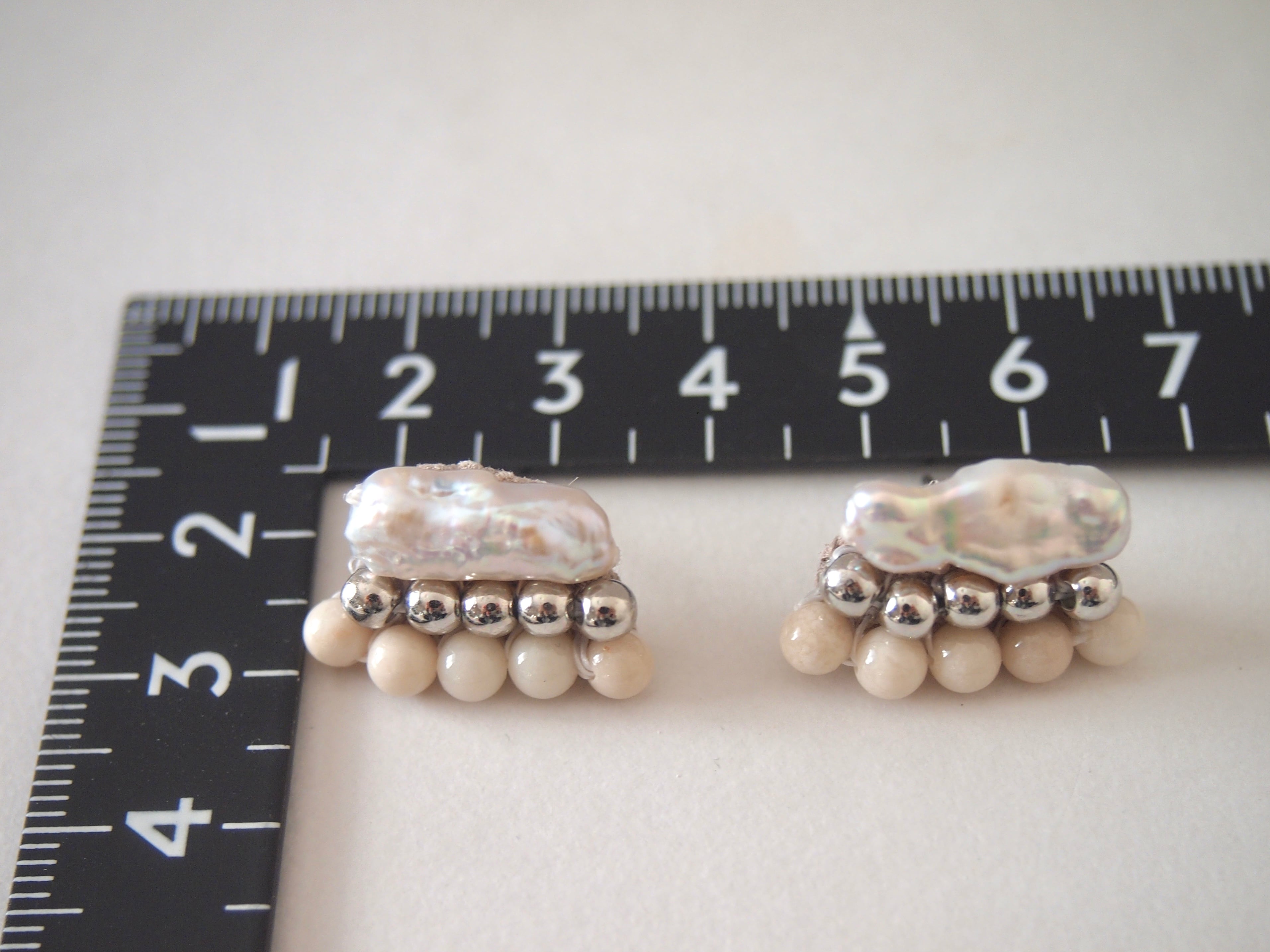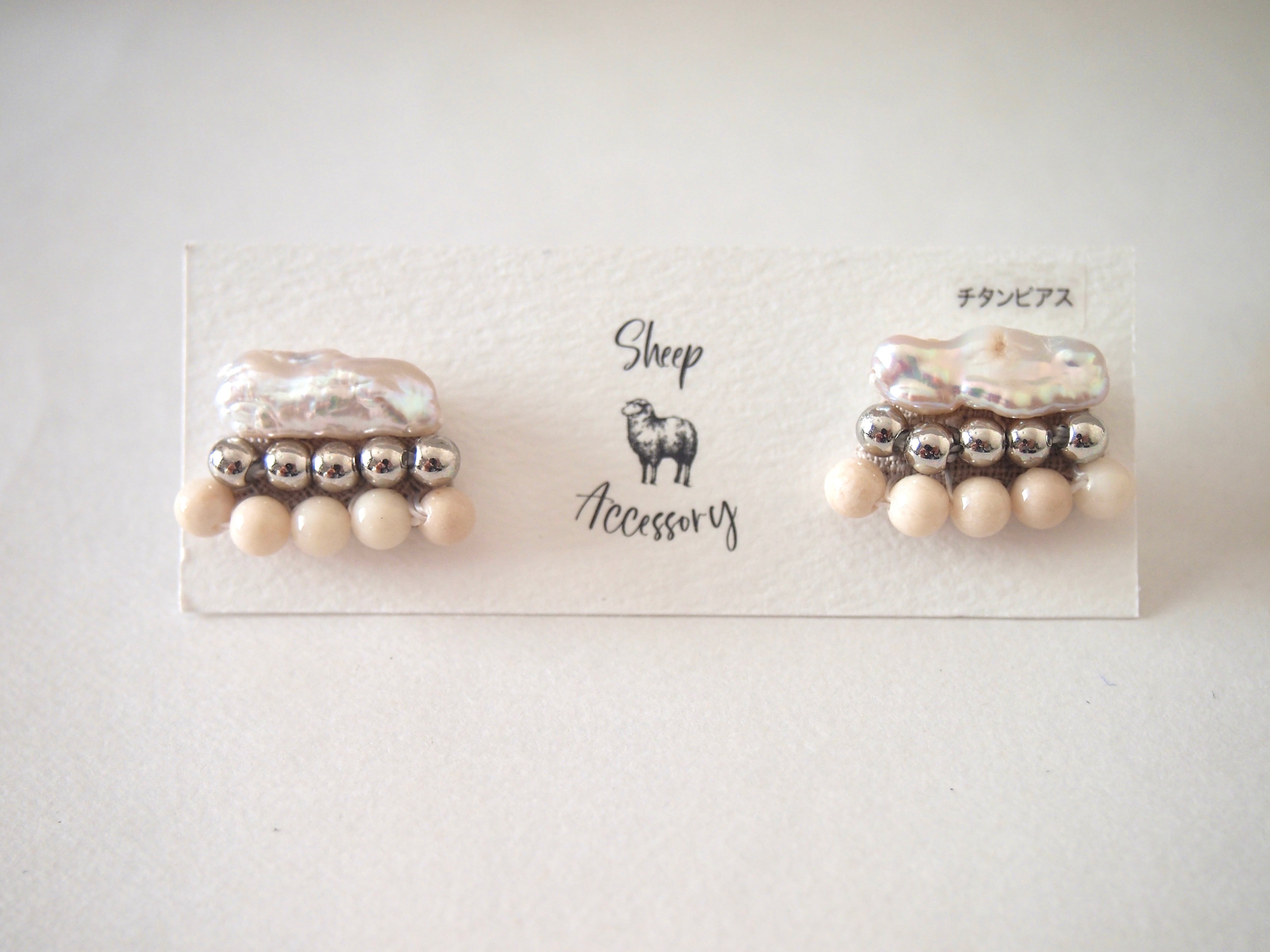 【受注制作】[ピアスorイヤリング]芥子パール×銅玉×リバーストーン