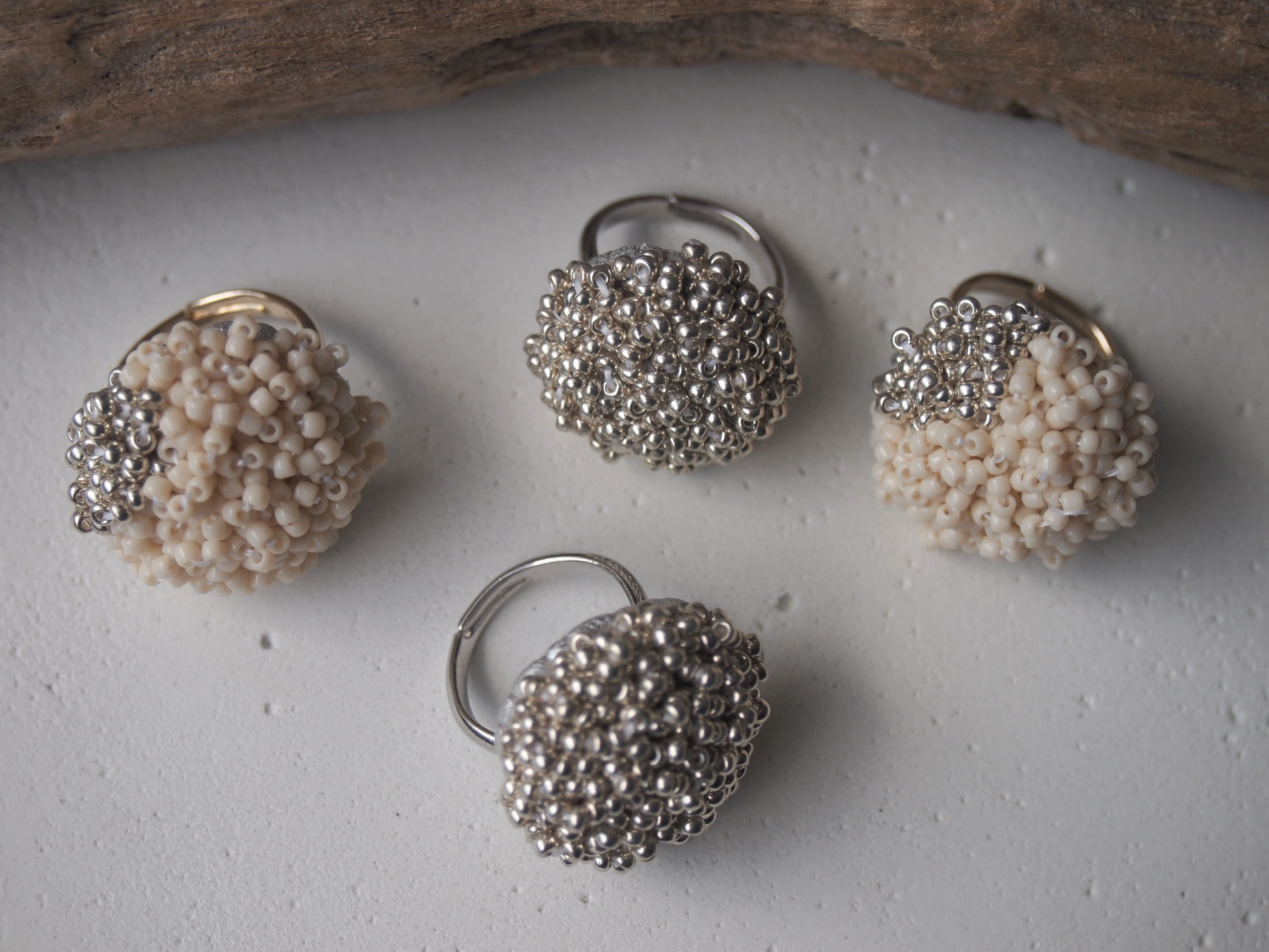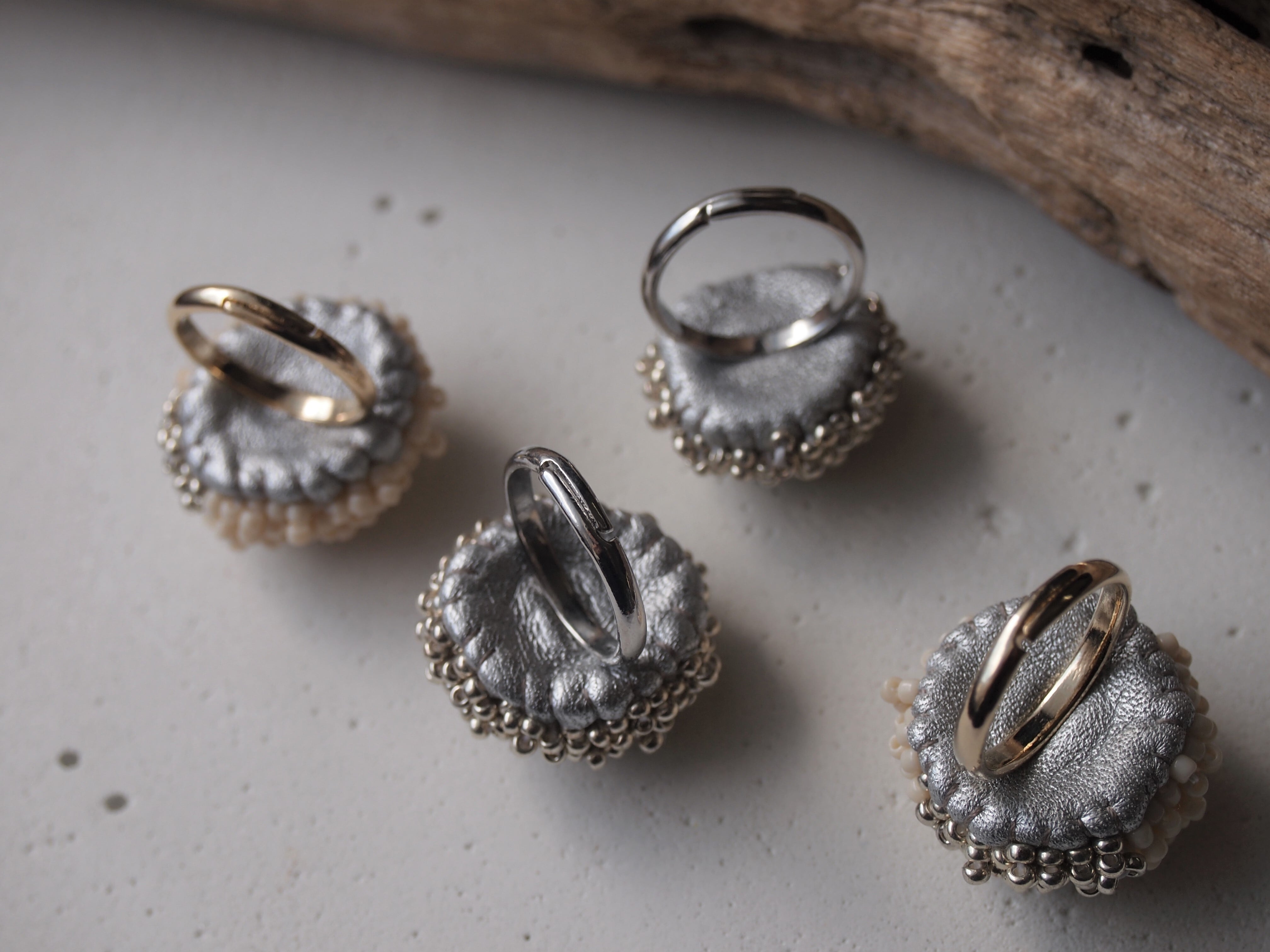 【受注制作】[リング]ビーズ刺繍リング white×silver